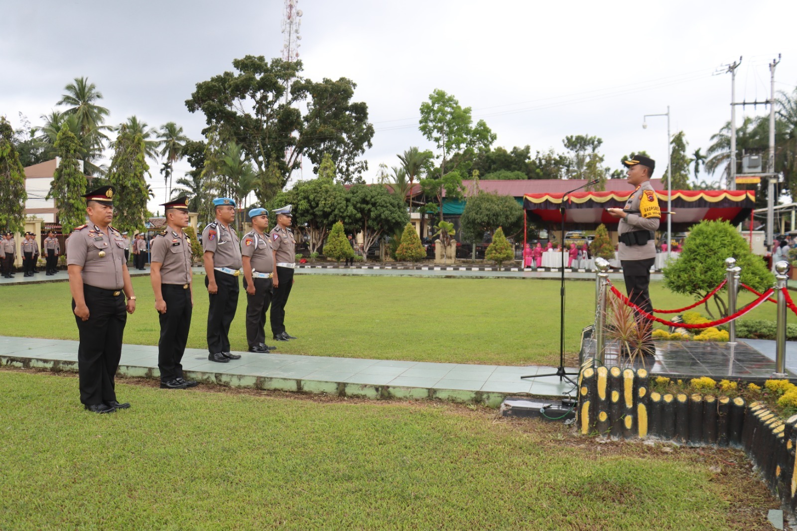 Bertindak sebagai Inspektur upacara Kapolres Pasaman Barat AKBP Agung Basuki, dan Komandan upacara Kanit Perlindungan Perempuan Anak (PPA) Ipda Admi Pandowita.