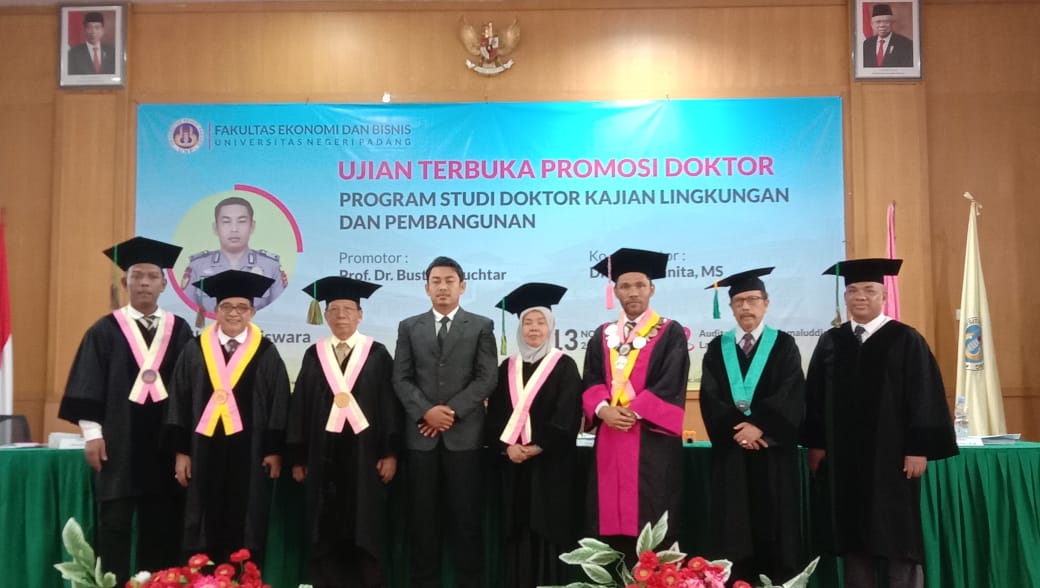Dalam pemaparannya di Ujian Terbuka Promosi Doktor Program Studi Kajian Lingkungan dan Pembangunan, Reszil mengangkat disertasi berjudul ‘Pengaruh Green Supply Chain Management Terhadap Kinerja Lingkungan Dimediasi oleh Green Innovation (Studi pada UMKM Kuliner di Sumatera Barat).