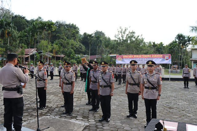 Sawahlunto, Kapolres Sawahlunto AKBP Purwanto Hari Subekti, S.Sos memimpin upacara serah terima jabatan (sertijab) dilingkungan Polres Sawahlunto, Sabtu (23/3) di halaman Mapolres.