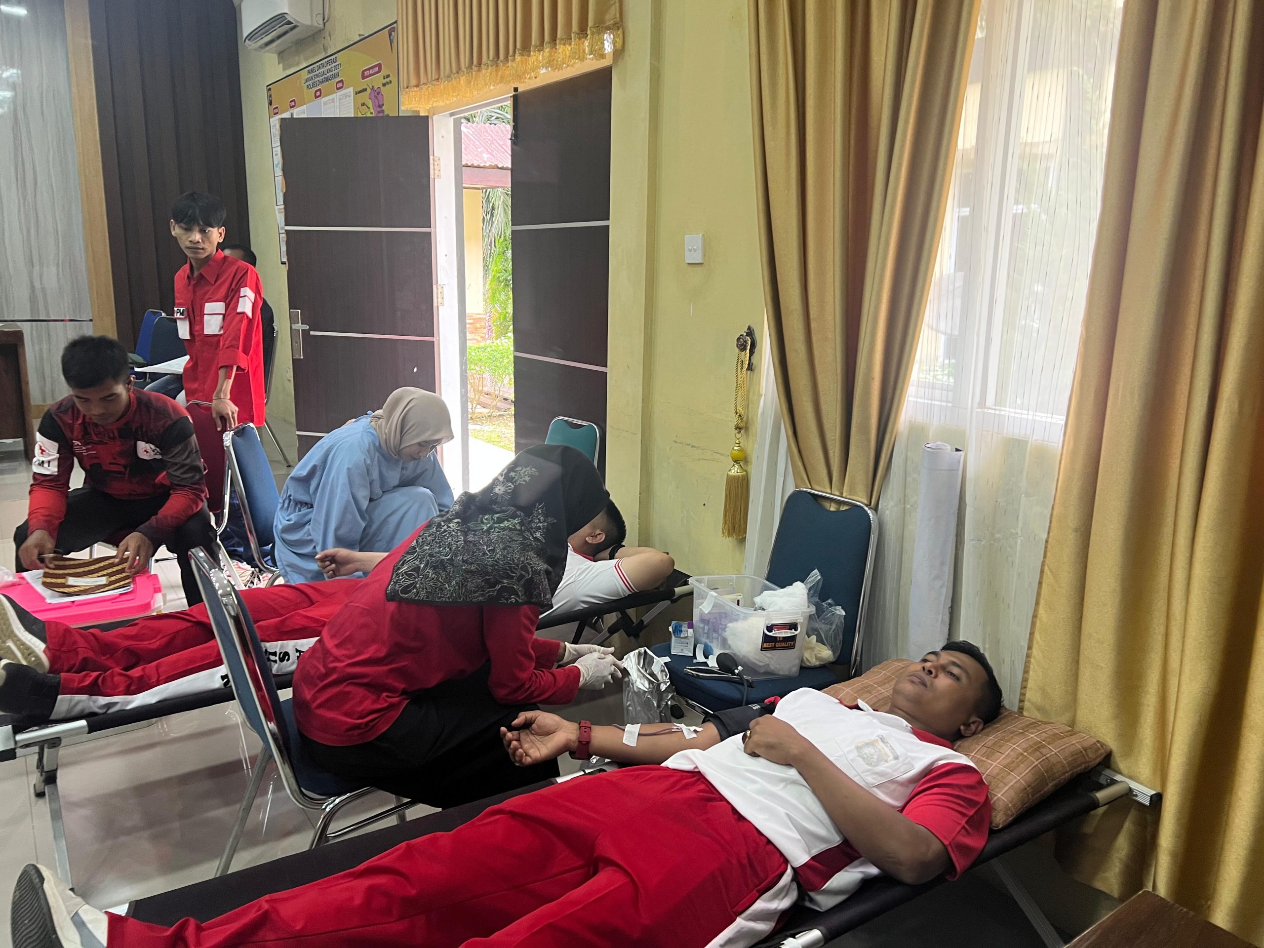 Puluhan personel Polres Dharmasraya berpartisipasi dalam kegiatan ini, bertujuan untuk memastikan cukupnya pasokan darah selama bulan Ramadhan.