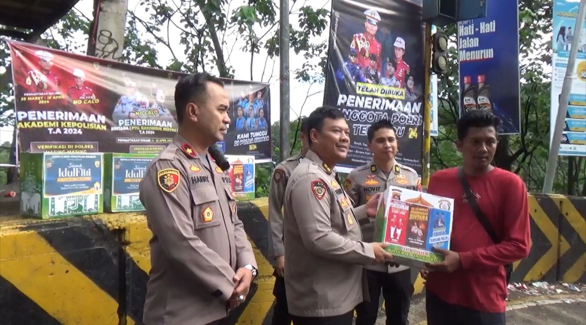 Selain sosialisasi penerimaan terpadu anggota polri, pihaknya juga membagikan bingkisan lebaran kepada perwakilan komunitas youtuber sitinjau lauik.(*)