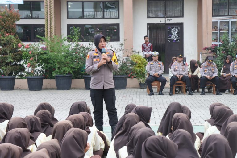Kombes Pol Yessi Kurniati memberikan penjelasan, solusi, dan memberikan semangat kepada para siswa untuk tidak takut melaporkan perundungan yang mereka alami.