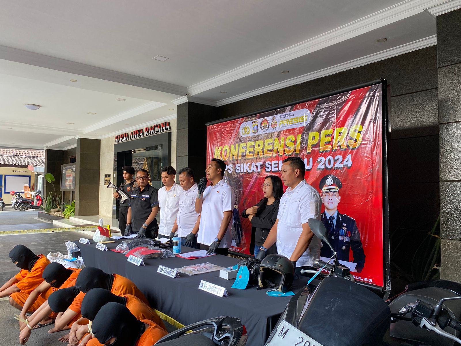Dari penangkapan tersebut Polisi juga berhasil mengamankan barang bukti berupa 2 (dua) buah senjata tajam jenis clurit dan 1 (satu) unit sepeda motor Suzuki smash nopol S 2166 Q.