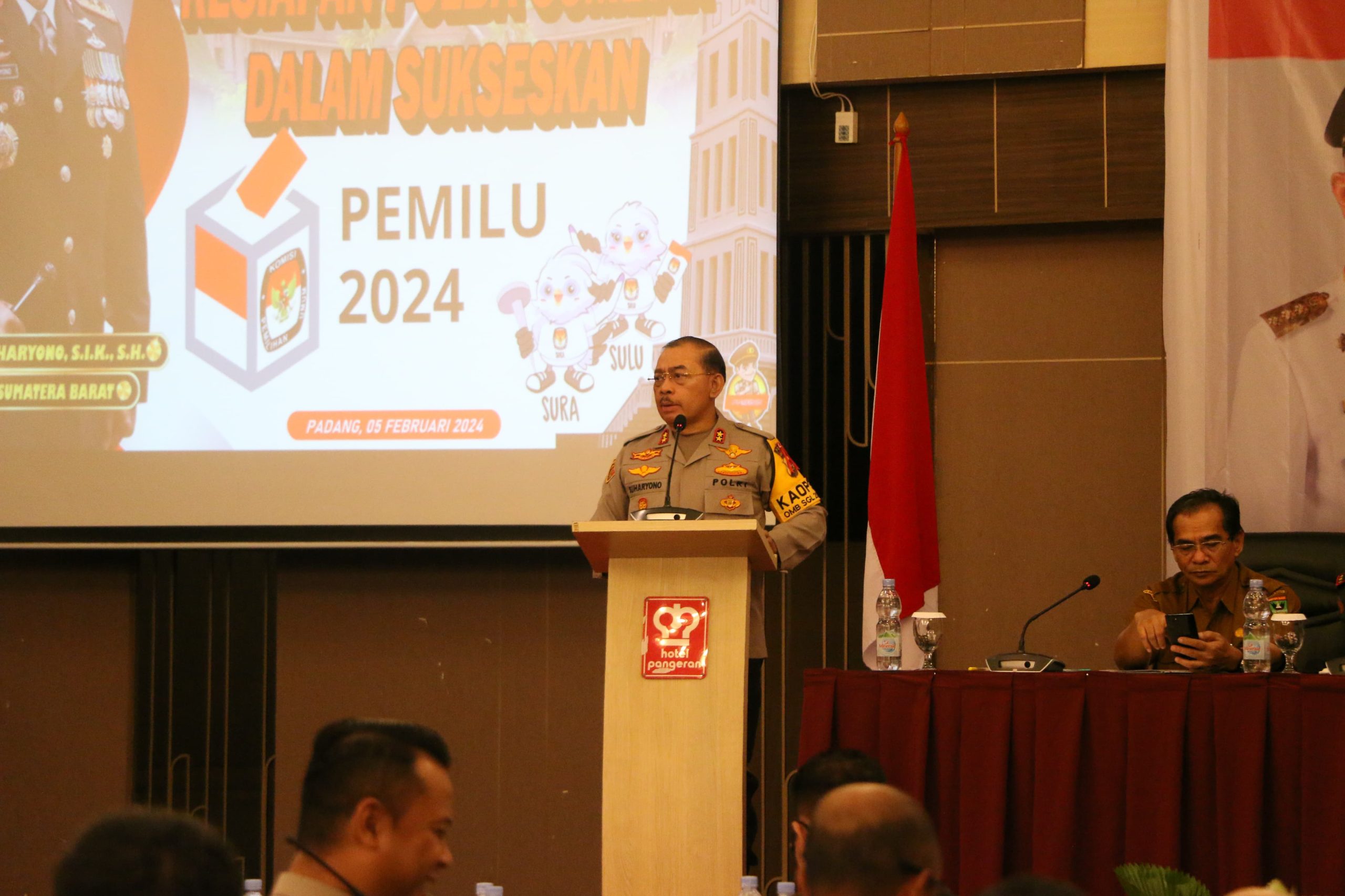 Sumbar, Kapolda Sumbar Irjen Pol Suharyono, S.Ik. SH menjadi narasumber dalam kegiatan Rapat Koordinasi (Rakor) Kesiapan Penyelenggara Pemilihan Umum (Pemilu) serentak Tahun 2024 di Sumatera Barat.
