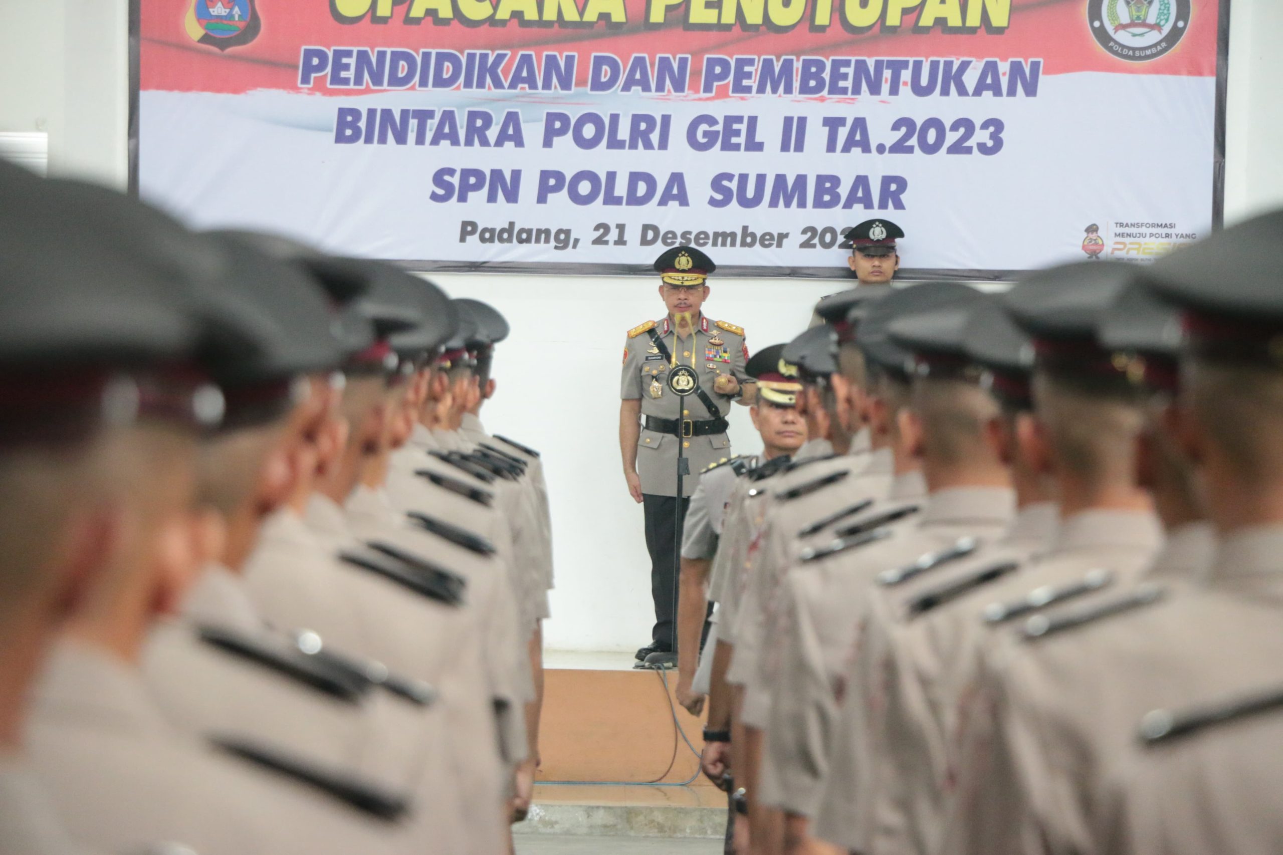 Pelantikan sekaligus penutupan pendidikan Bintara Polri gelombang II T.A 2023 tersebut, berlangsung di Gedung Dojo Wira Satya SPN Polda Sumbar, Kamis (21/12) pagi.