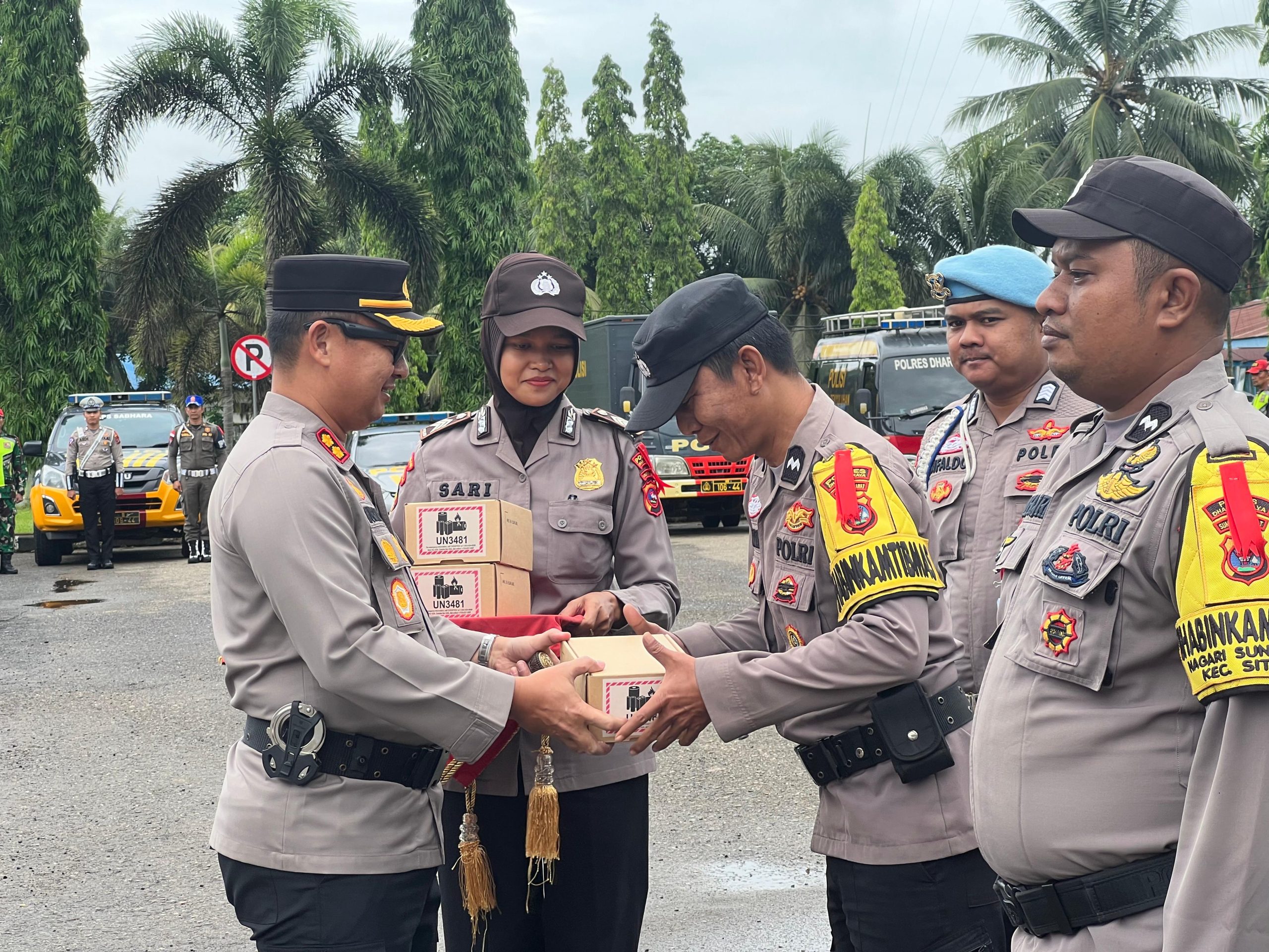 Pada acara tersebut, Kapolres Dharmasraya memimpin pemasangan pita tanda Operasi Kepolisian Terpusat “Lilin-2023” dan penyerahan Alat Komunikasi Dinas Polri berupa headphone dari Kakorbinmas Polri kepada Bhabinkamtibmas jajaran Polres Dharmasraya.