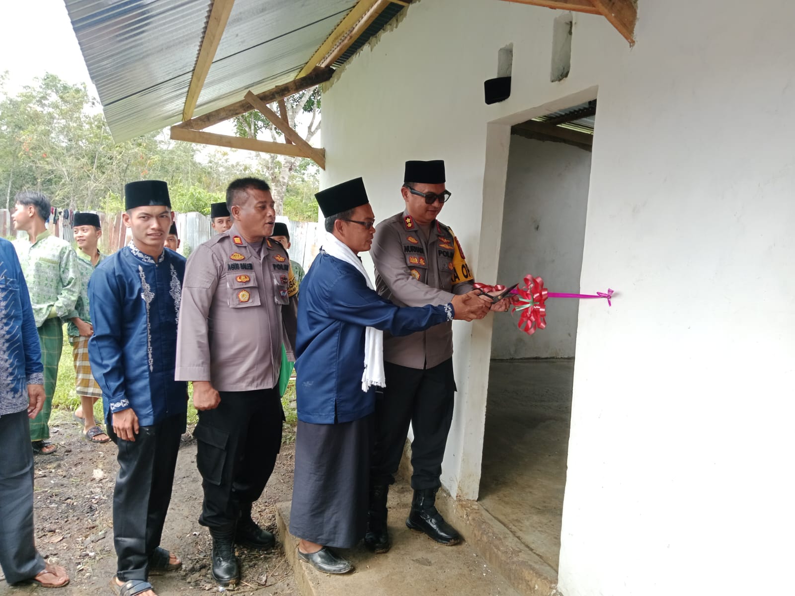 Pemotongan pita sebagai simbol peresmian dilakukan secara bersama-sama oleh Kapolres Dharmasraya dan Ketua Yayasan Pondok Pesantren.
