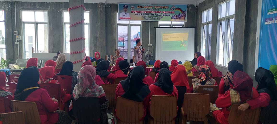 Dharmasraya, Kapolsek Pulau Punjung, Iptu Iin Cenderi, S. H, M., menjadi pemateri utama pada Pelatihan Bundo Kanduang Nagari Empat Koto Pulau Punjung yang digelarkan di Aula Kantor Nagari Empat Koto Pulau Punjung, Kecamatan Pulau Punjung Kabupaten Dharmasraya pada Selasa (14/11/2023) pukul 10.00 WIB.