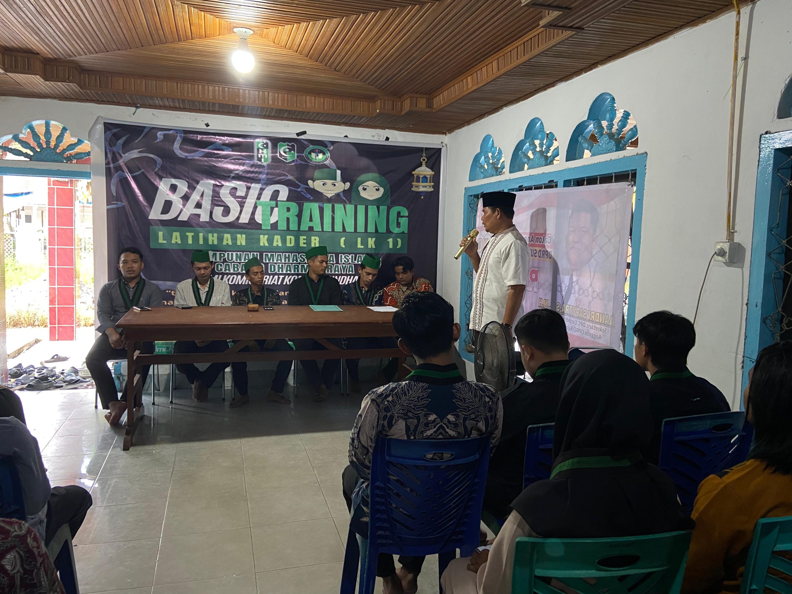 Presedium KAHMI Dharmasraya, Daniel, memberikan sambutan dan penyerahan SK Peserta kepada 25 peserta. Basic Training/Latihan Kader HMI Komisariat Komikes Cabang Dharmasraya akan berlangsung selama 4 hari, hingga 26 Maret 2024.