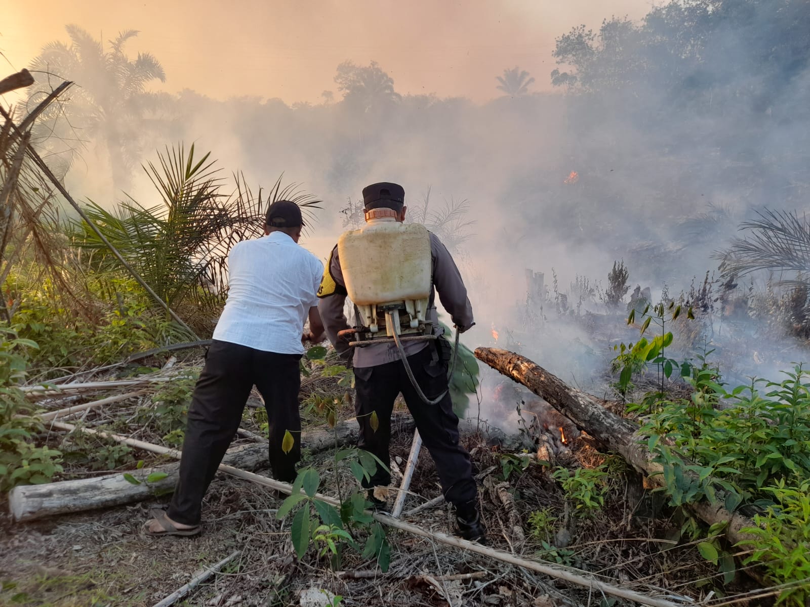 Mendapatkan laporan tersebut berkoordinasi dengan petugas Pemadam Kebakaran,personel Polsek Sungai Rumbai langsung terjun ke lokasi dan bersama masyarakat setempat berjibaku memadamkan api yang sedang menjalar di areal lahan perkebunan milik Yuda (42) dengan luas lebih kurang 1/2 Ha dan lahan perkebunan milik Hasan (50) seluas 2 Ha.