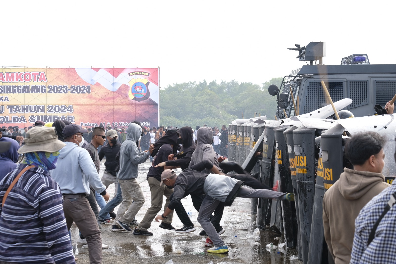 Sumbar, Dalam rangka kesiapan Operasi Mantap Brata Singgalang 2023-2024, Polda Sumatera Barat menggelar Simulasi Sispamkota untuk pengamanan Pemilu tahun 2024 di wilayah hukum Polda Sumbar.