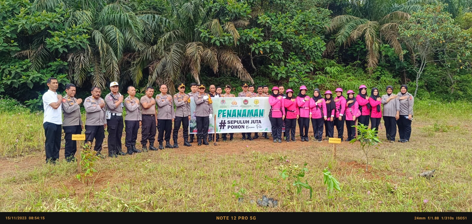Dharmasraya, Polres Dharmasraya, Polda Sumbar mengambil langkah proaktif untuk menjaga lingkungan dan mengurangi dampak perubahan iklim dengan melaksanakan penanaman ribuan bibit pohon secara serentak.