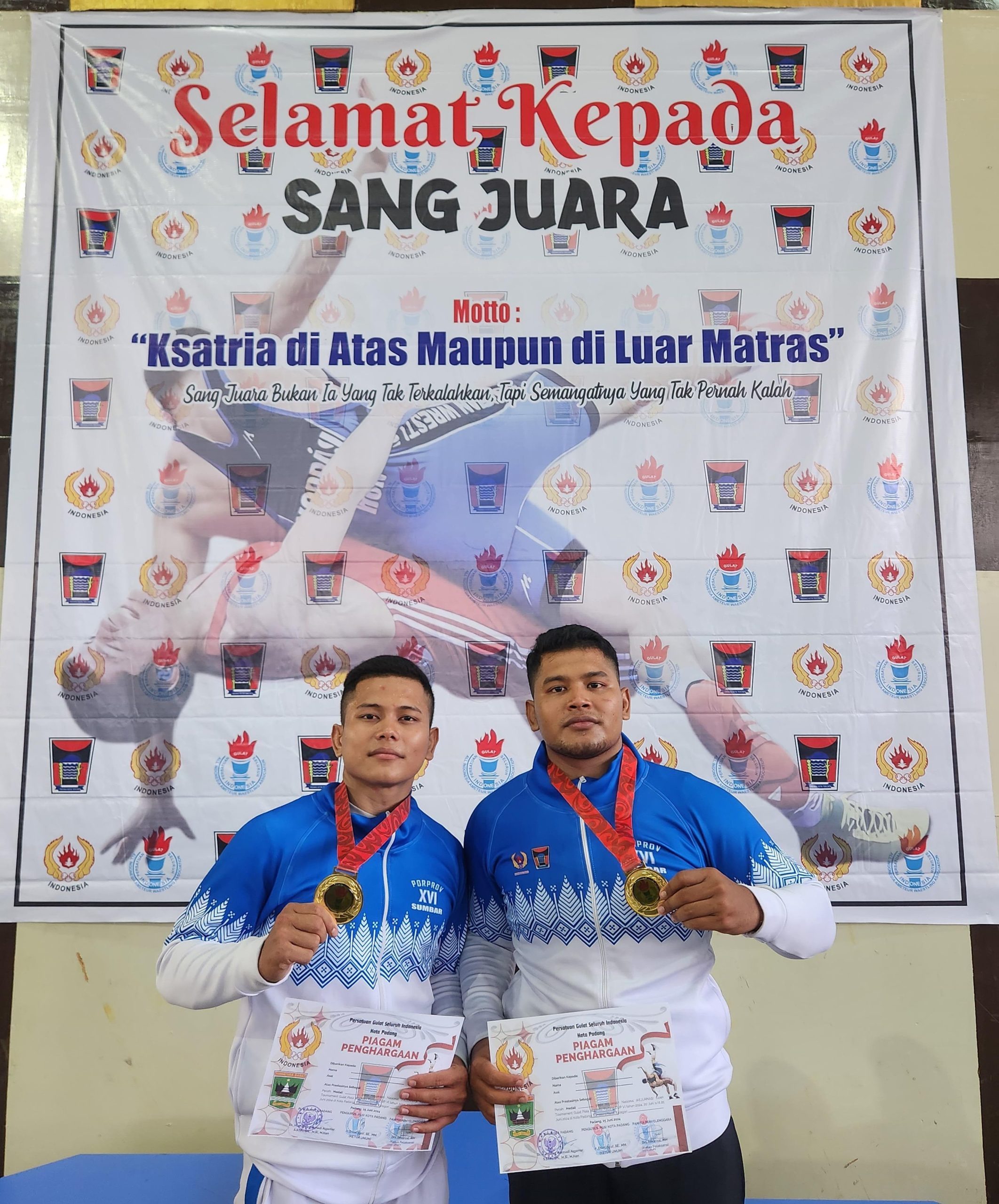 Sumbar, Dua personel Polda Sumbar meraih medali emas pada cabang olahraga Gulat dalam Kejuaraan Gulat Nasional Open 2024, pada tanggal 24 Juni 2024 di GOR Universitas Negeri Padang (UNP).