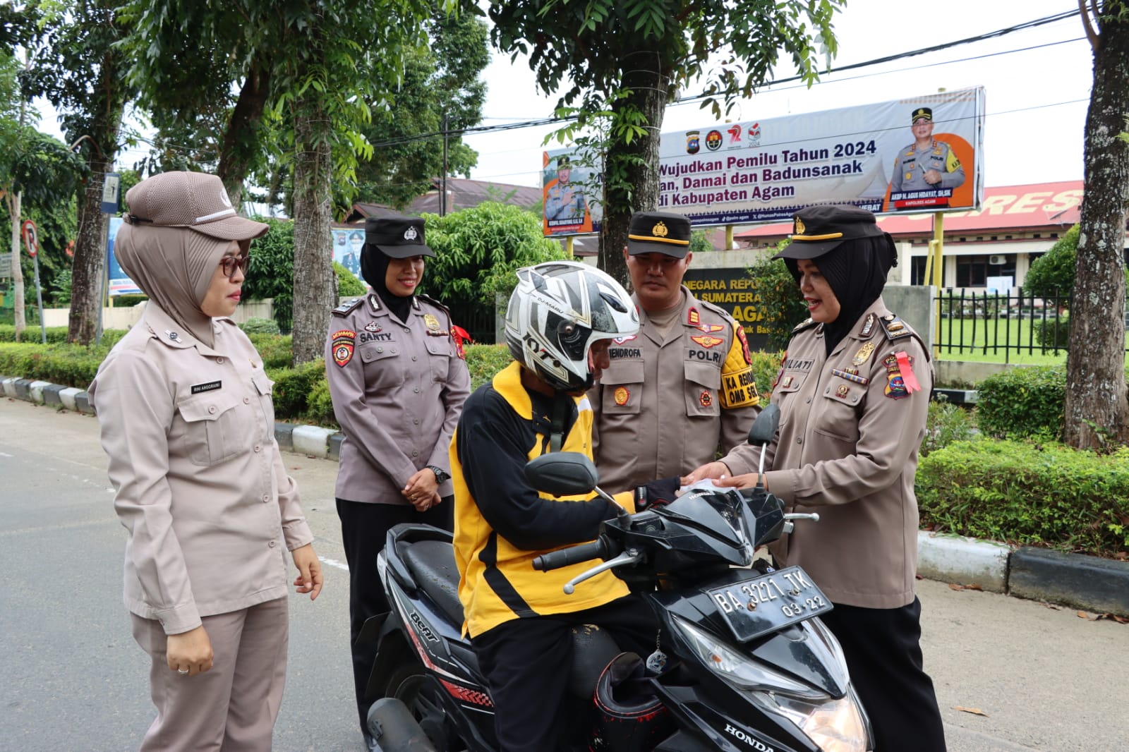 Agam, Jajaran Polisi Wanita (Polwan) dan ASN Polres Agam bagikan ratusan paket takjil kepada masyarakat pengguna jalan. Kegiatan itu digelar di jalan Jenderal Sudirman depan Mapolres Agam pada Jumat (22/3) sore.