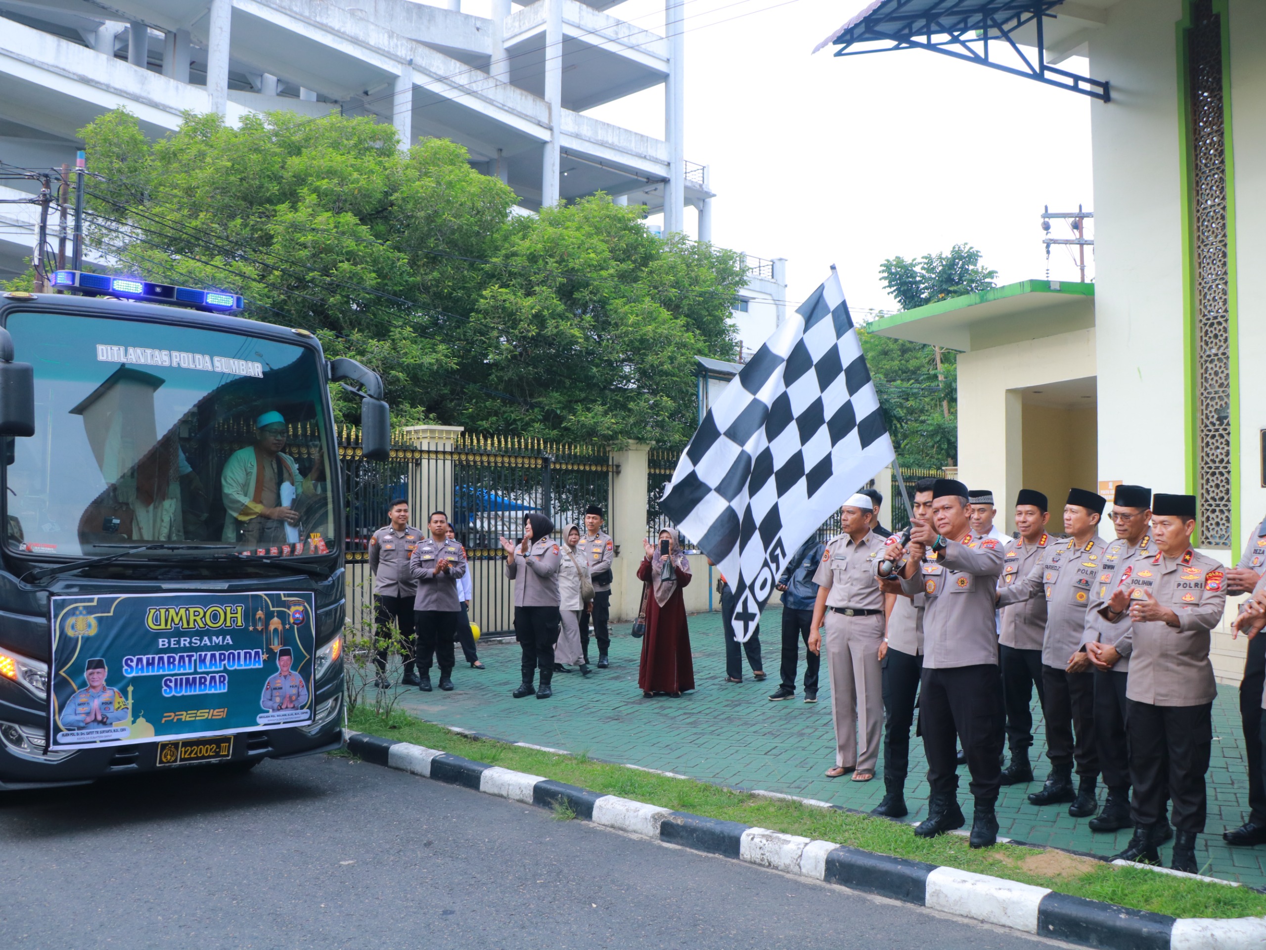 Sumbar, Kepala Kepolisian Daerah (Kapolda) Sumatera Barat, Irjen Pol. Gatot Tri Suryanta, secara resmi melepas keberangkatan jamaah umrah dari jajaran Polda Sumbar di halaman Mesjid Ar – Rahman, Senin (27/10/2025). Acara pelepasan ini dihadiri oleh Wakapolda Sumbar Brigjen Pol Solihin, Irwasda Kombes Pol Guritno Wibowo dan sejumlah pejabat utama Polda Sumbar dan para jamaah umrah yang akan berangkat ke Tanah Suci.