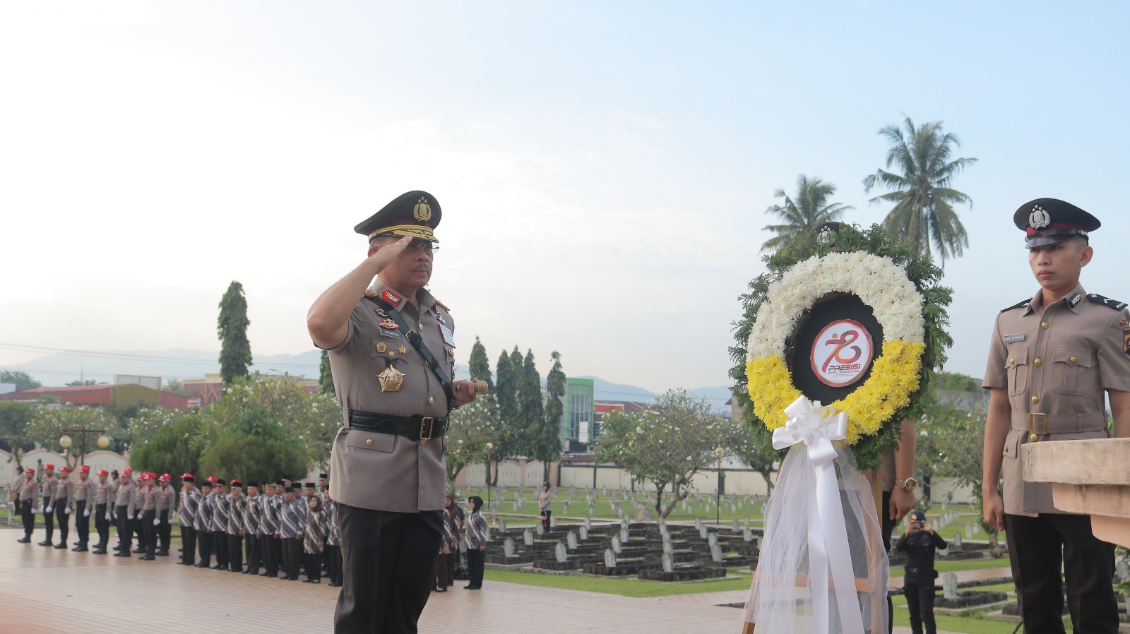 Sumbar, Masih dalam rangkaian menyambut peringatan Hari Bhayangkara ke-78 tahun 2024, Polda Sumatera Barat (Sumbar) menggelar ziarah dan tabur bunga, Senin (24/6).