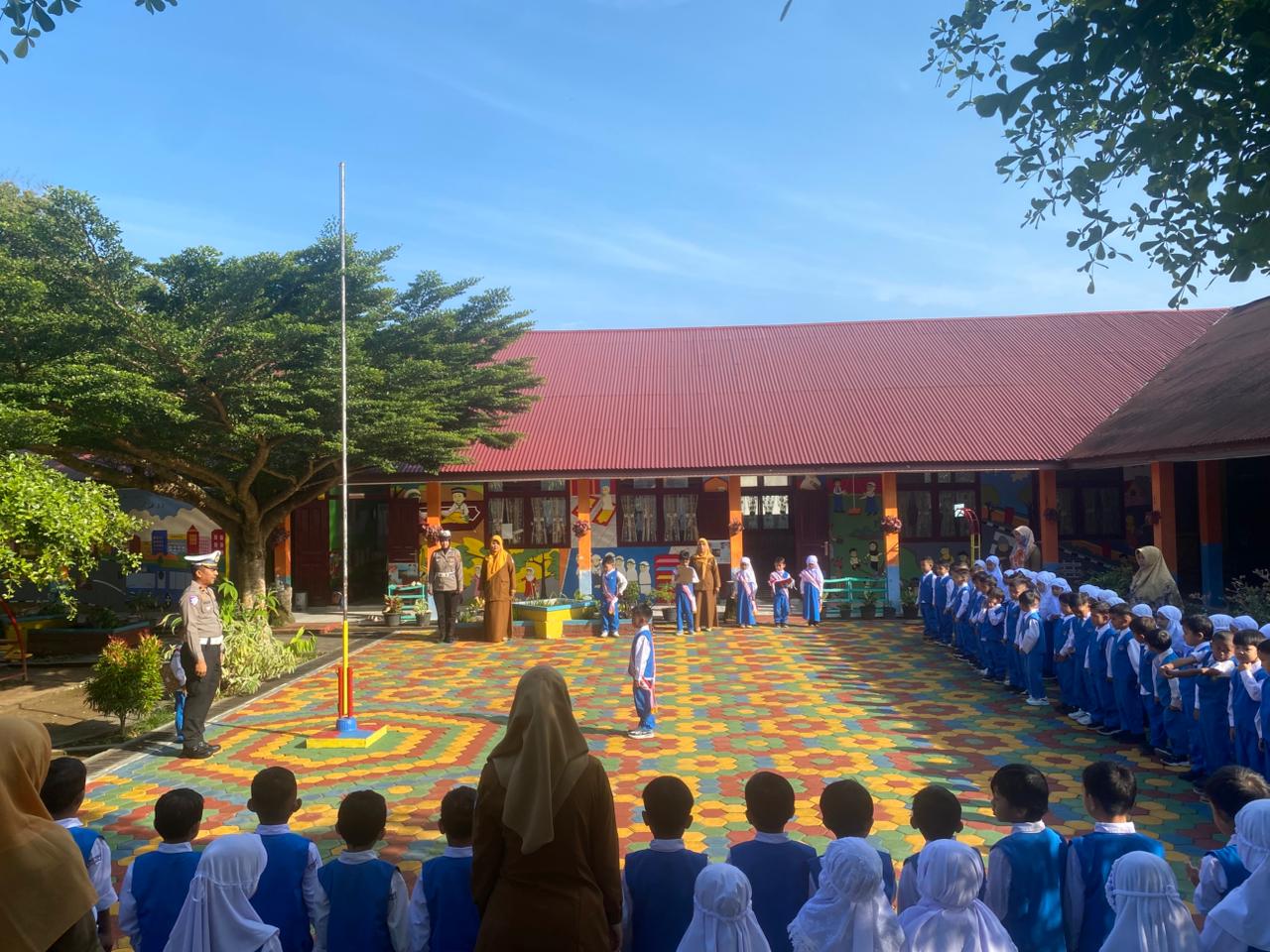 Selain bertindak sebagai Pembina Upacara, personel Satlantas yang dipimpin Ipda Holpi bersama Brigadir Nia Aulia Rahayu dan Bripda Ibnul Arrabbi juga memberikan sosialisasi mengenai pentingnya tertib berlalu lintas sejak usia dini.