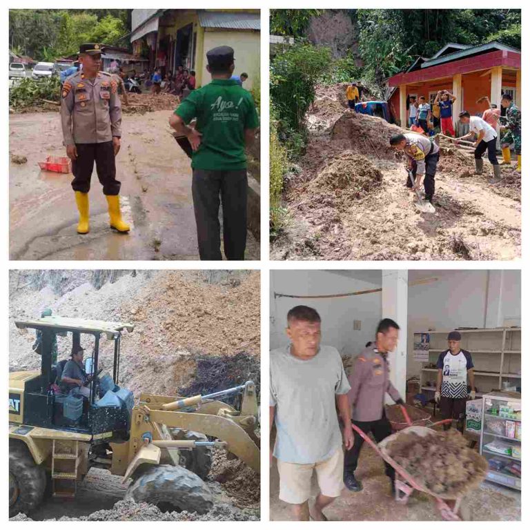 Atas kejadian tersebut, Kapolsek Palupuh Iptu Afrizal, SH. MH dan personel Polsek Palupuh serta Bhabinkamtibmas Aiptu Dodi Sri dan Aiptu Desi Azwar langsung ke lokasi melakukan pembersihan material longsor.