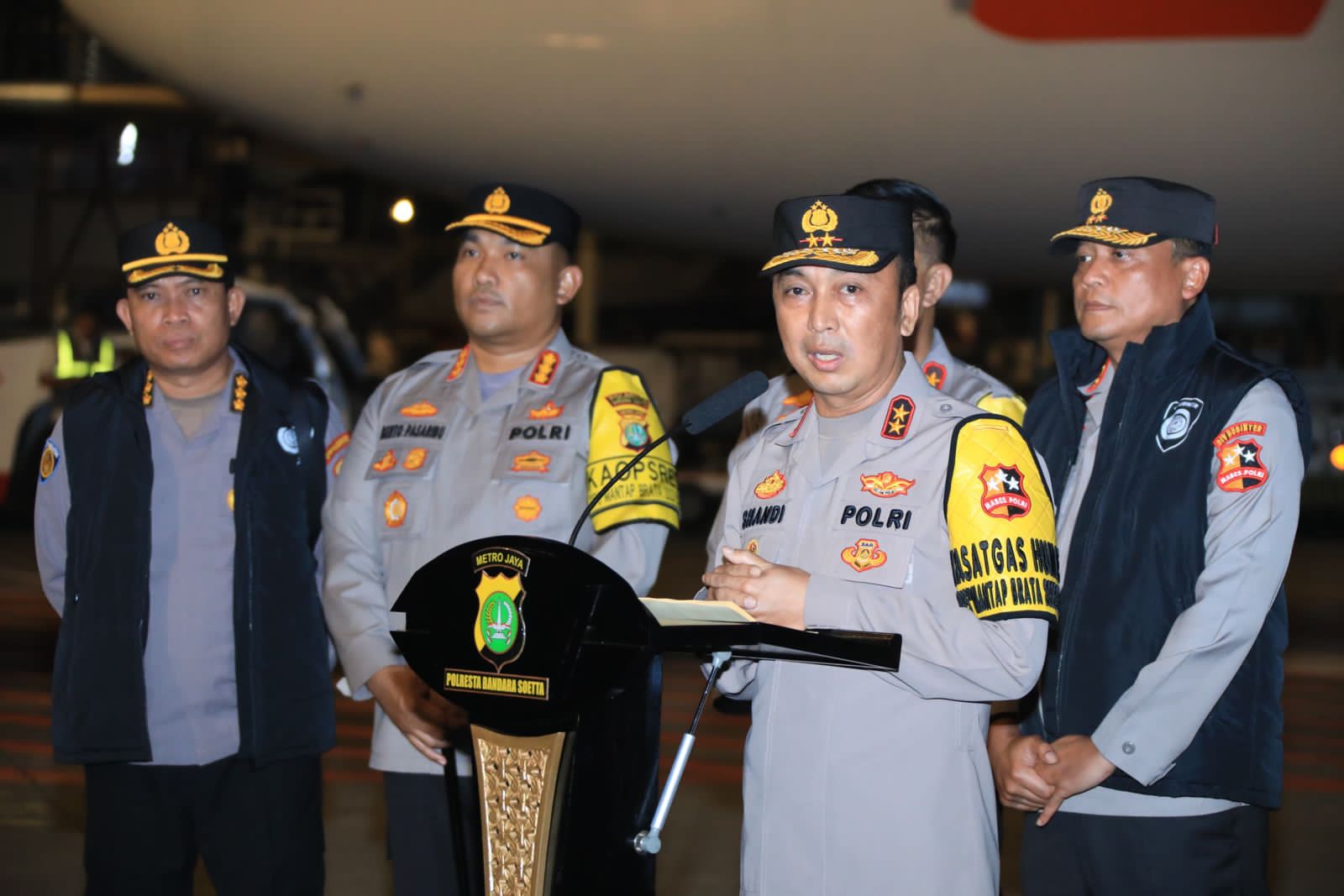 “Kenapa berangkatnya berbeda? Karena diatur keberangkatannya agar ketibaannya bersamaan di Bandara El Aris besok pagi pukul 07.00 waktu setempat,” ungkap Kadiv Hubinter.