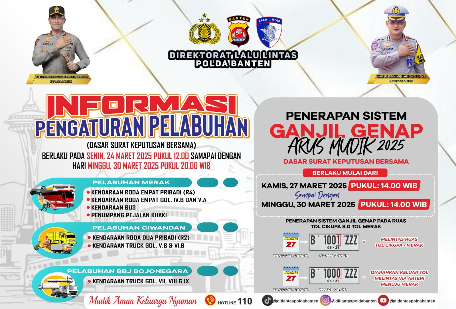 Untuk informasi lebih lanjut dan perkembangan terbaru, masyarakat dapat mengikuti kanal resmi media sosial Ditlantas Polda Banten.
