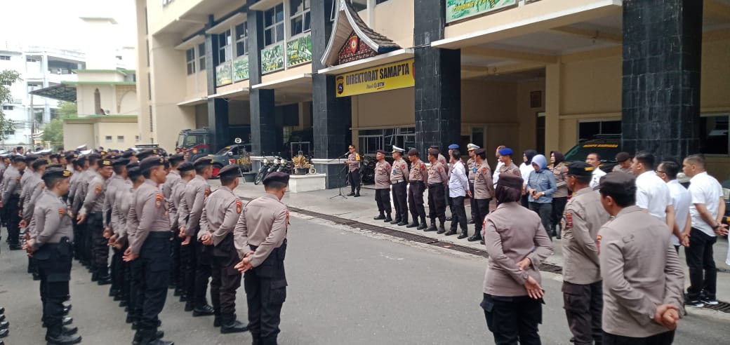 Sumbar, Ratusan personel Polda Sumatera Barat (Sumbar) yang terlibat Operasi Mantap Brata Singgalang 2023-2024 melaksanakan pengamanan kampanye.