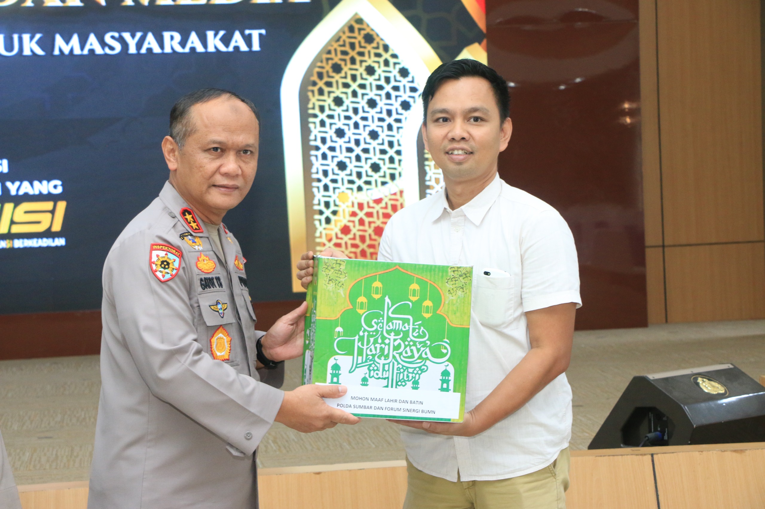 Dalam sebuah acara yang berlangsung, Kapolda Sumbar Irjen Pol Gatot Tri Suryanta secara simbolis menyerahkan bingkisan Lebaran kepada perwakilan wartawan dari berbagai media cetak, elektronik, dan daring.