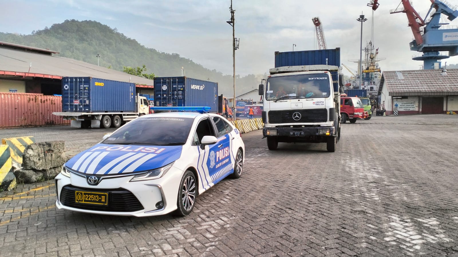 Sumbar, Polda Sumatera Barat (Sumbar) melakukan pengamanan dan pengawalan terhadap logistik Pemilu 2024 dari dermaga Pelabuhan Teluk Bayur.
