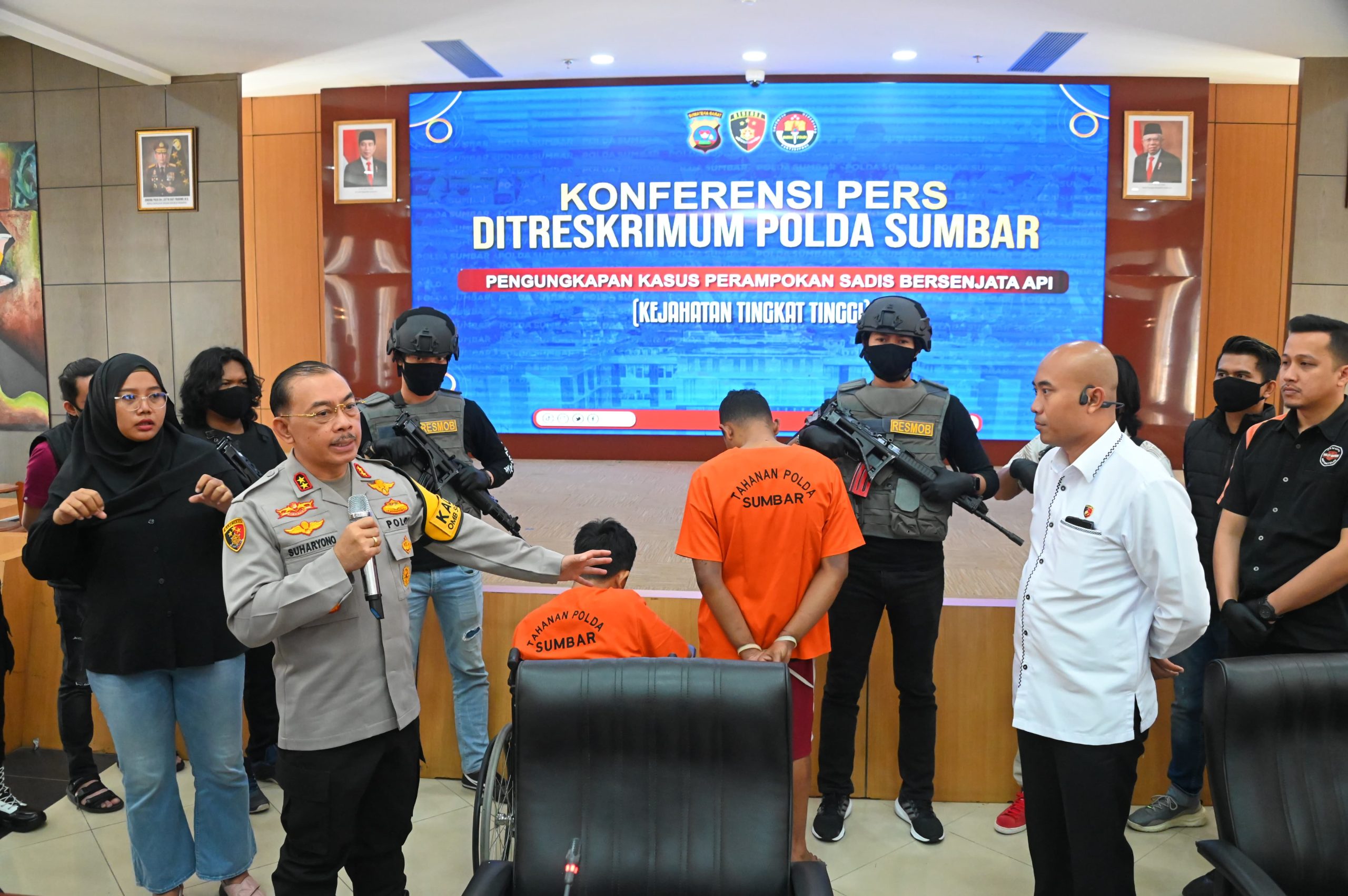 Kapolda Sumbar Irjen Pol Suharyono yang didampinggi Wakapolda sumbar Brigjen Pol Gupuh Setiyono, S.Ik. MH dan Dirreskrimum Kombes Pol Andri Kurniawan, S.Ik. MH serta beberapa pejabat utama menjelaskan, bahwa para tersangka merupakan residivis kasus perampokan.