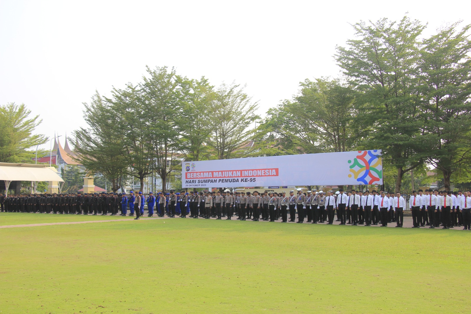Upacara peringatan Sumpah Pemuda ini, bertindak sebagai inspektur upacara Kapolda Sumbar Irjen Pol Suharyono, S.Ik. SH, dengan diikuti oleh Pejabat Utama Polda Sumbar, para Pamen, Perwira, Bintara dan ASN Polda Sumbar.