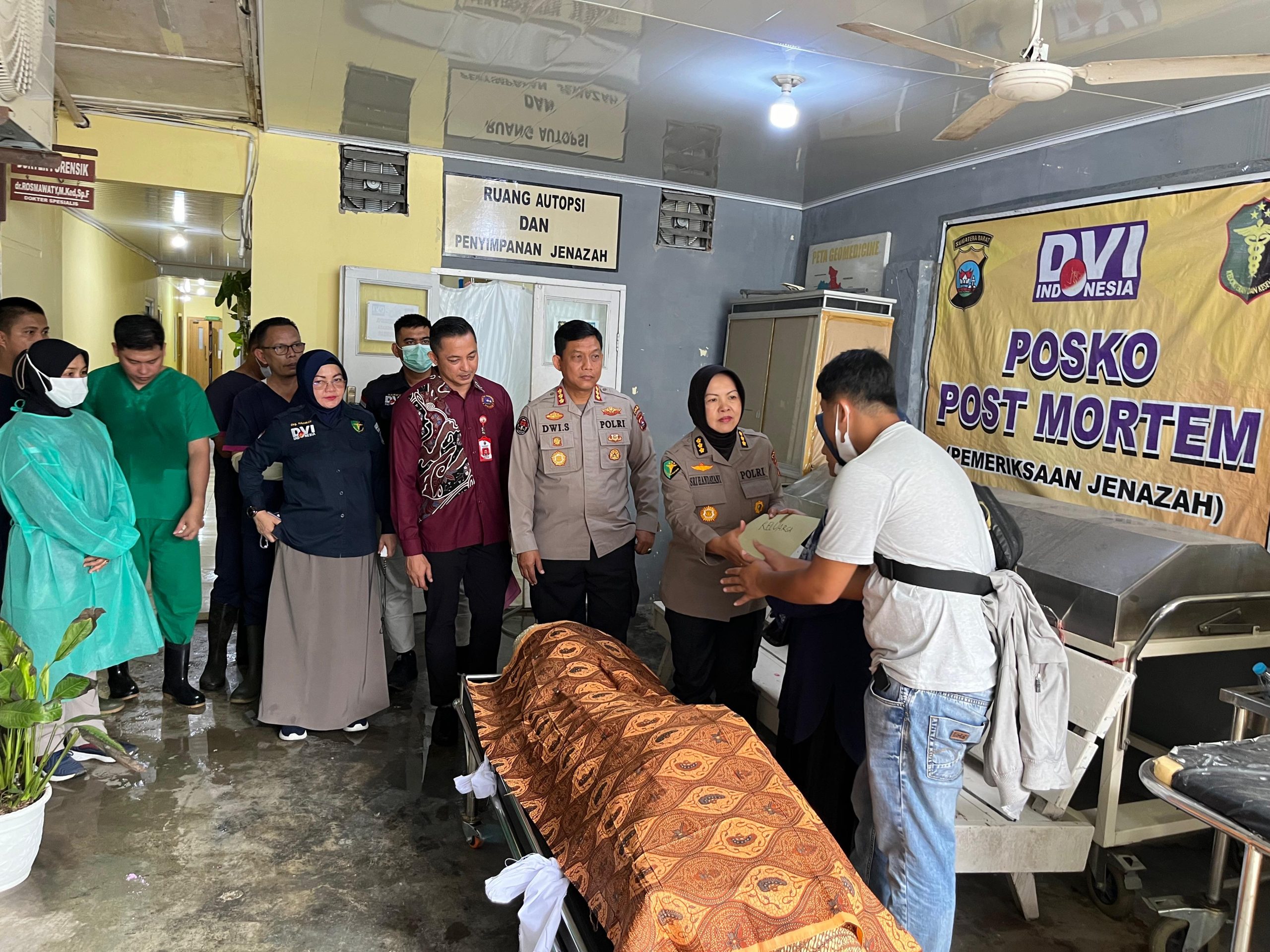Dalam penyerahan jenazah tersebut, didampingi oleh Kabid Humas Polda Sumbar Kombes Pol Dwi Sulistyawan, S.Ik. dan Karumkit Bhayangkara Padang Kompol dr. Dedet Steavano, M.Ked (OG)., Sp.OG.