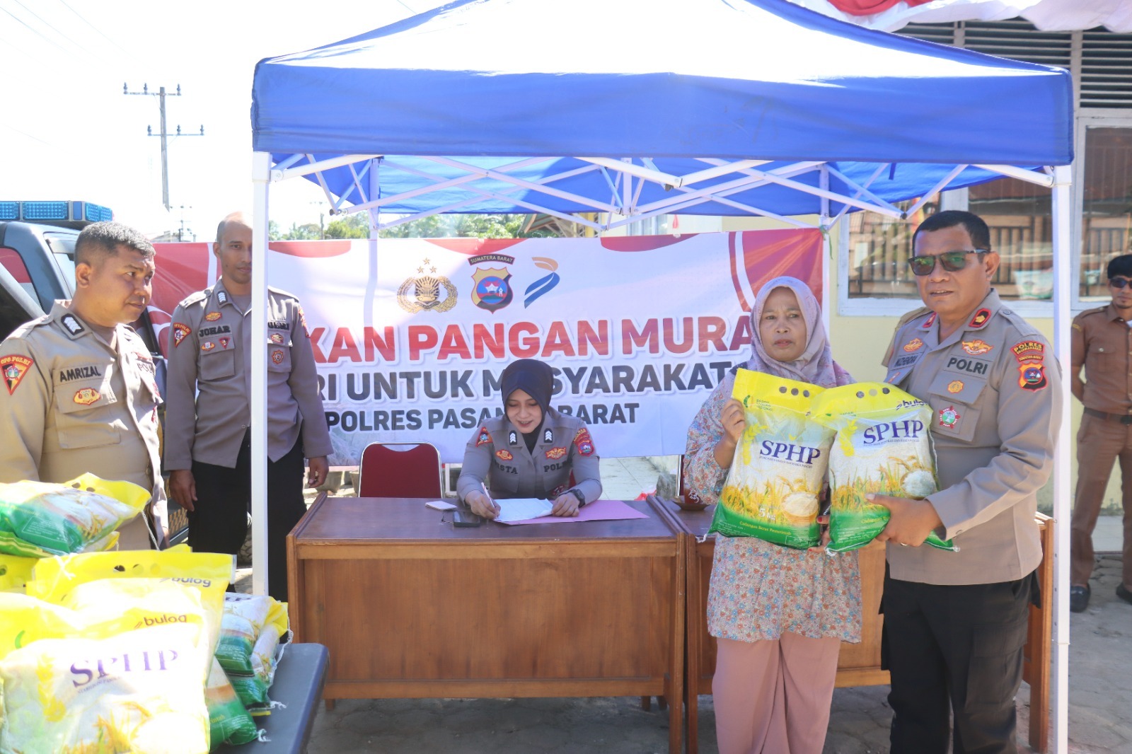 Polres Pasaman Barat Distribusikan Puluhan Ton Beras Murah Kepada Masyarakat Di Nagari Aua Kuning, Kecamatan Pasaman