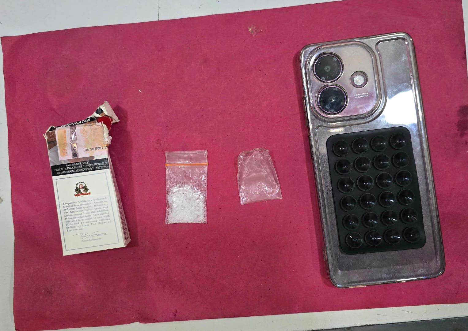 “Saat dilakukan penggeledahan, kami temukan satu plastik klip bening berisi butiran kristal diduga sabu, satu plastik kosong, satu bungkus rokok, dan satu unit handphone merk Oppo warna hitam. R mengakui seluruh barang bukti tersebut miliknya,” lanjutnya.