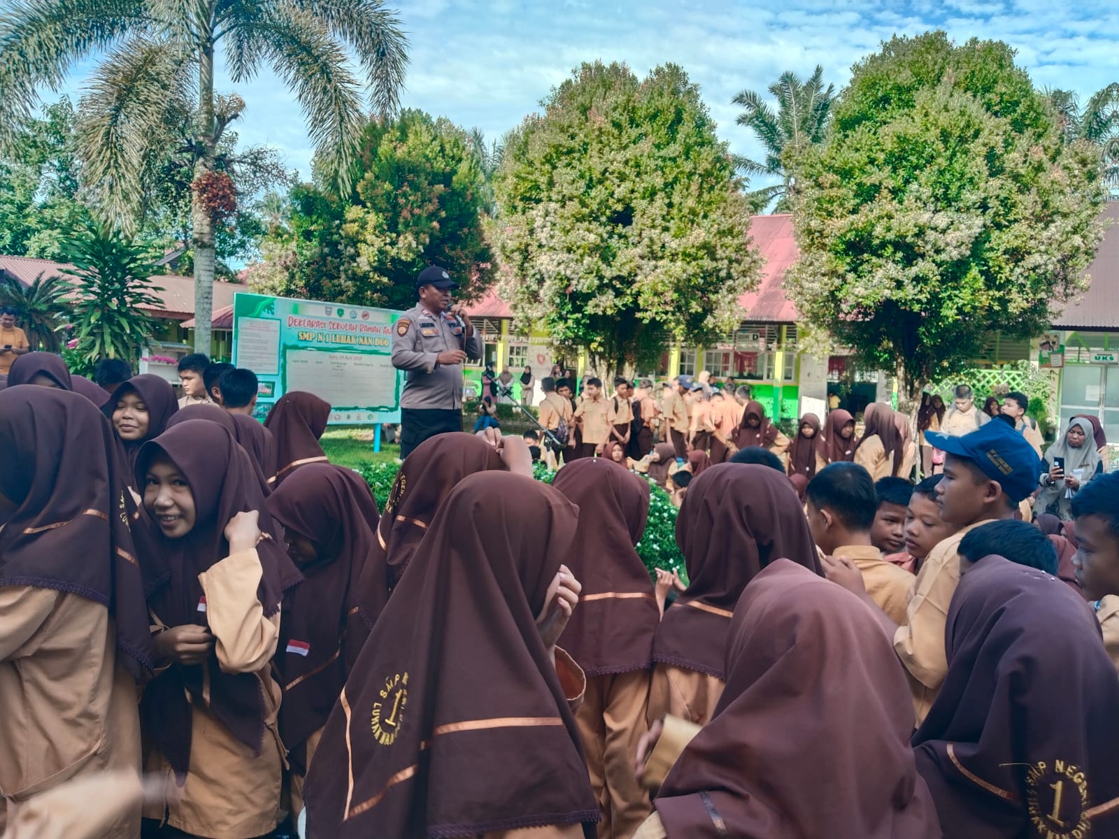 Kegiatan itu dilaksanakan oleh Kepala Pos Polisi (Kapospol) Simpang Tiga Aiptu Suhartono didampingi oleh Bhabinkamtibmas Koto Baru Aipda Wahyul Azizwan, di Sekolah Menengah Pertama (SMP) Negeri 1 Luhak Nan Duo, Sabtu (4/10/2025).