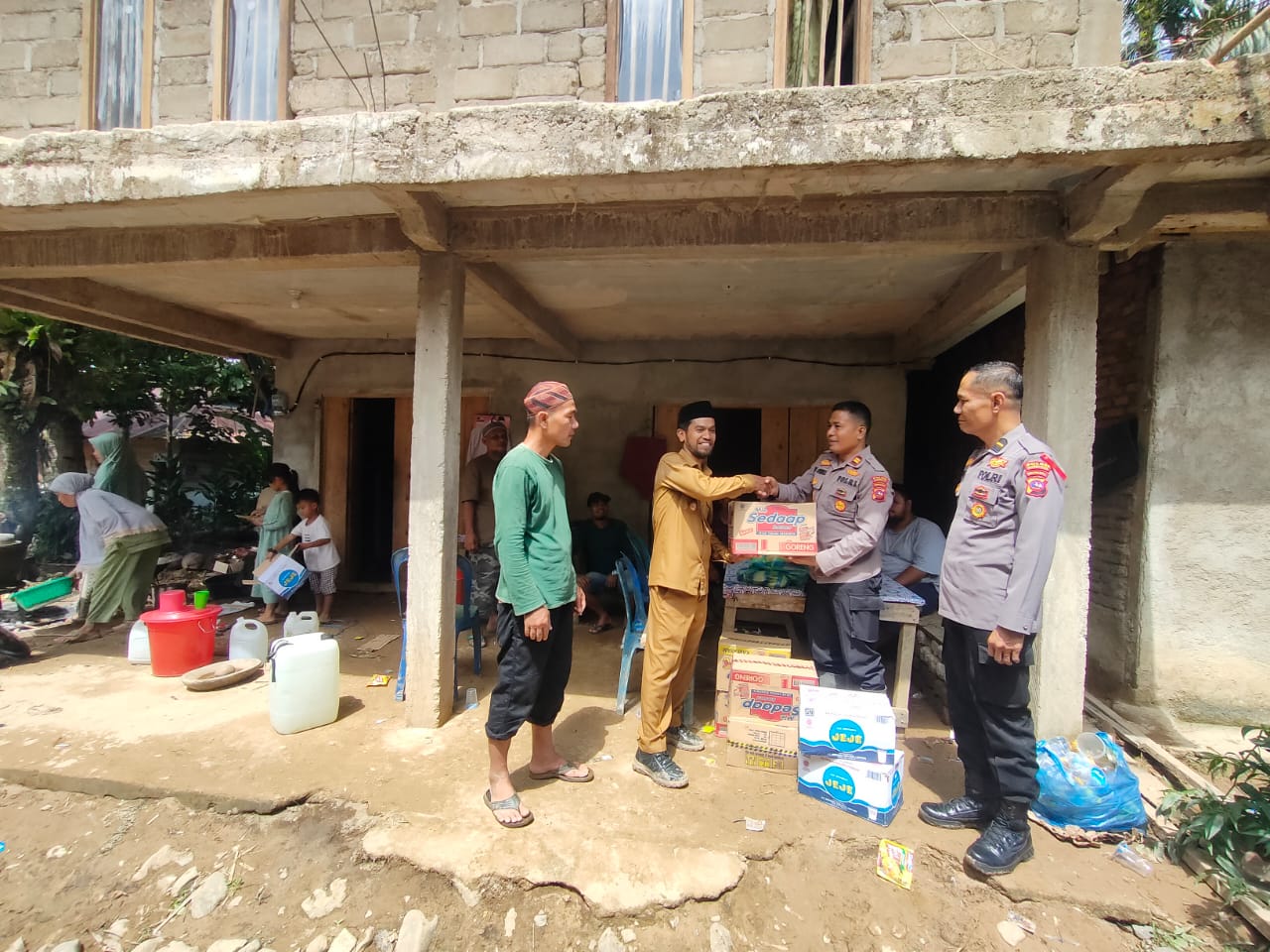 Pada kesempatan tersebut, Kapolsek Pulau Punjung dan anggotanya berkesempatan juga memberikan bantuan sembako sebagai upaya membantu warga yang terkena musibah.