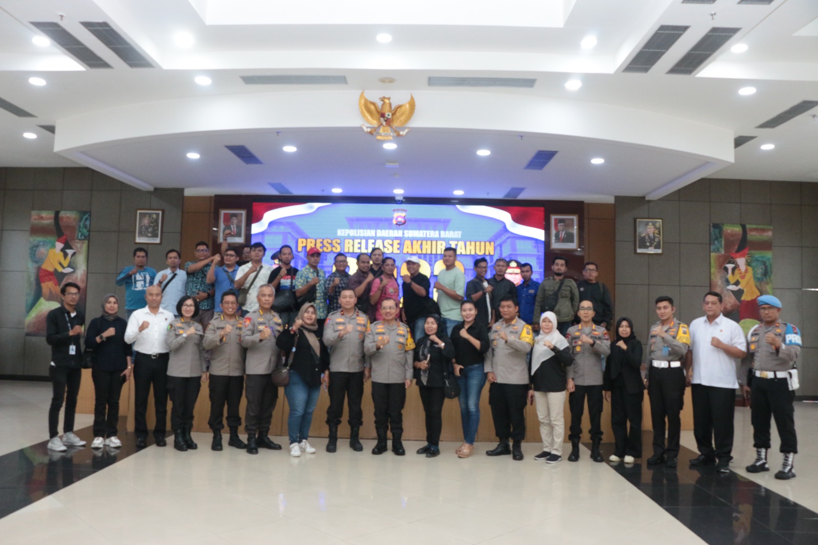 Sumbar, Kapolda Sumatera Barat, Irjen Pol Suharyono, S.Ik. SH menggelar kegiatan press release akhir tahun 2023, pada Minggu (31/12/2023) di lantai 4 Mapolda Sumbar.