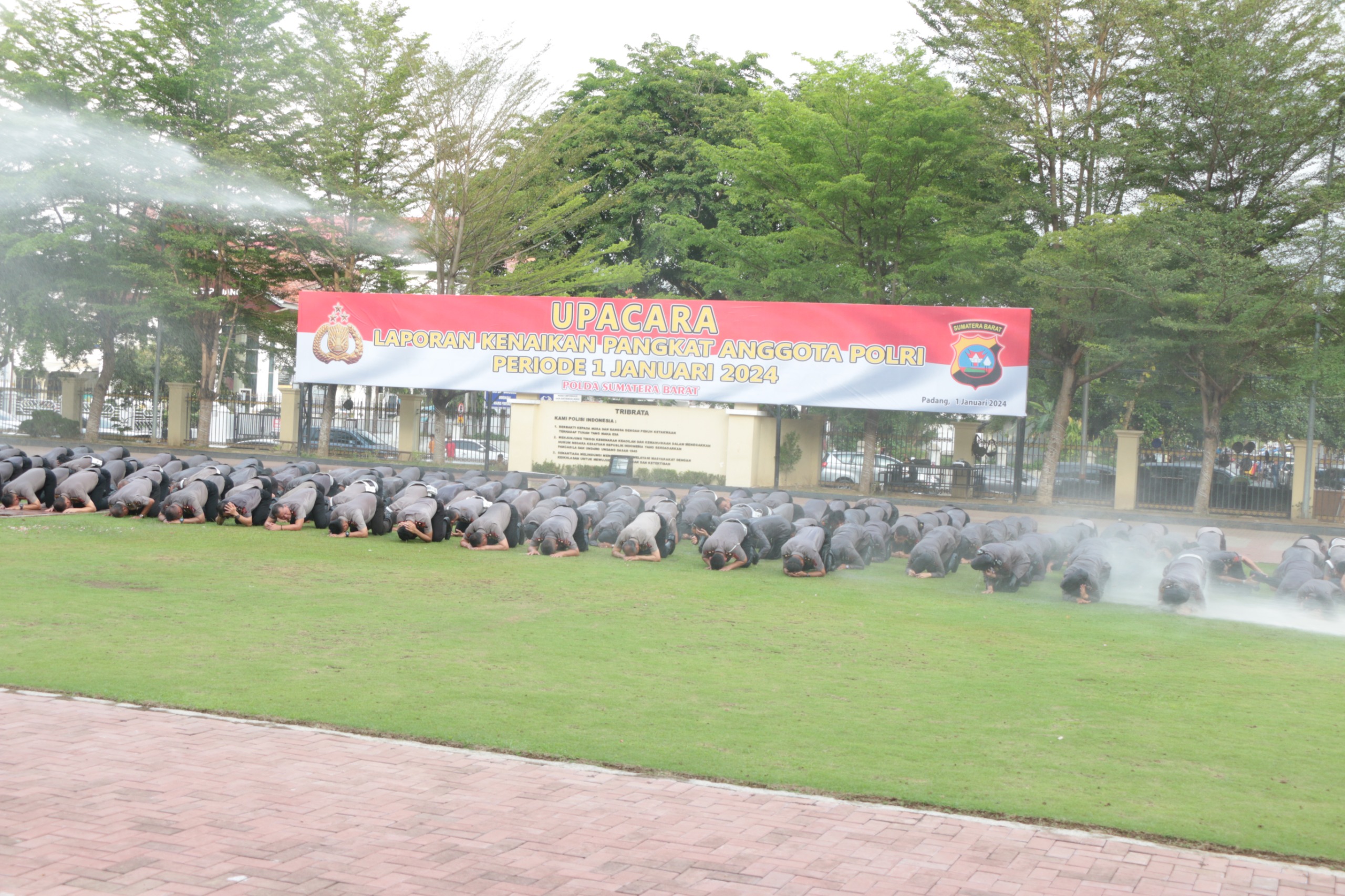 257 personel Polda yang mendapatkan kenaikan pangkat, ditandai dengan pelaksanaan upacara korp raport kenaikan pangkat yang dipimpin oleh Kapolda Sumbar Irjen Pol Suharyono, S.Ik. SH pada Minggu (31/12) sore di halaman Mapolda.