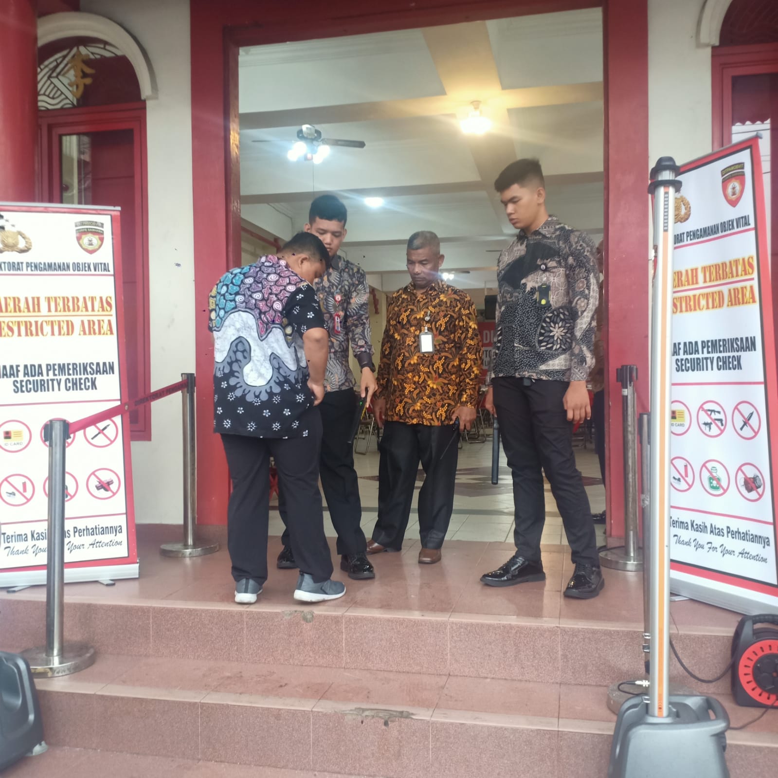 Sumbar, Satgas Operasi Mantap Brata (OMB) Singgalang 2023-2024 Polda Sumbar, memberikan pengamanan terhadap kegiatan calon wakil presiden (Cawapres) no urut 03 Mahfud MD di Padang, Sumatera Barat.