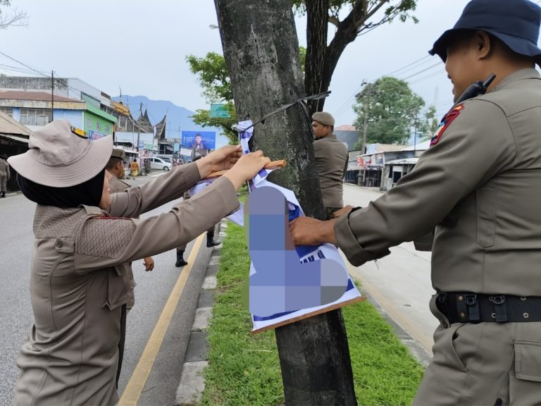 Satpol PP Padang Bongkar Sejumlah Poster yang Terpasang di Pohon-pohon Pelindung