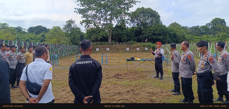 Dharmasraya, Polres Dharmasraya Polda melaksanakan kegiatan Latihan Peningkatan Kemampuan (Latkatpuan) menembak di Lapangan Sarja Arya Racana Polres Dharmasraya, Kamis, 02/05/2024.