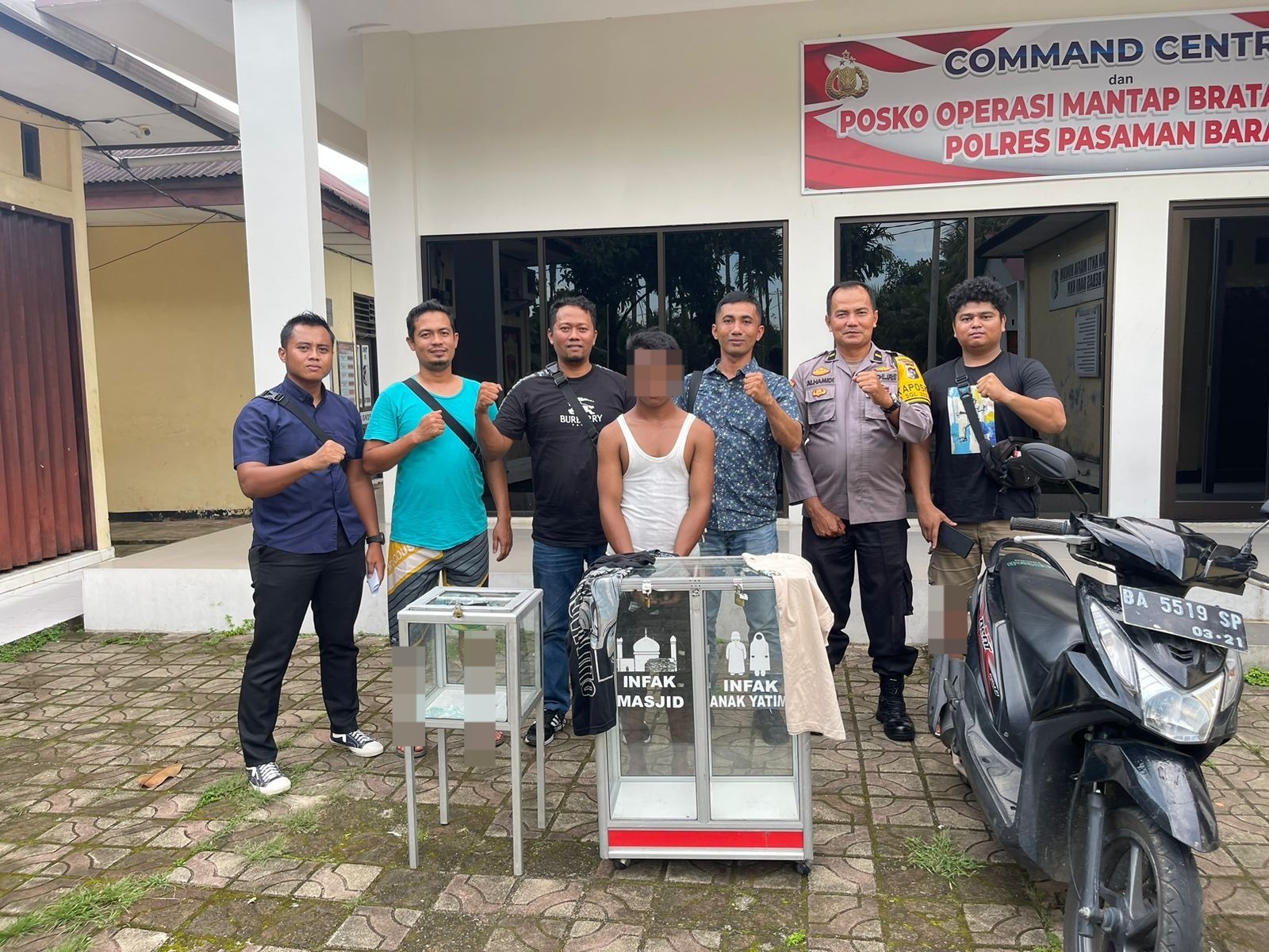 Pasaman Barat, Satuan Reserse Kriminal (Sat Reskrim) Polres Pasaman Barat meringkus seorang pemuda berinisial DS (18) yang diduga melakukan tindak pidana pencurian sepeda motor dan kotak infak yang video aksinya terekam CCTV dan viral dimedia sosial (medsos).