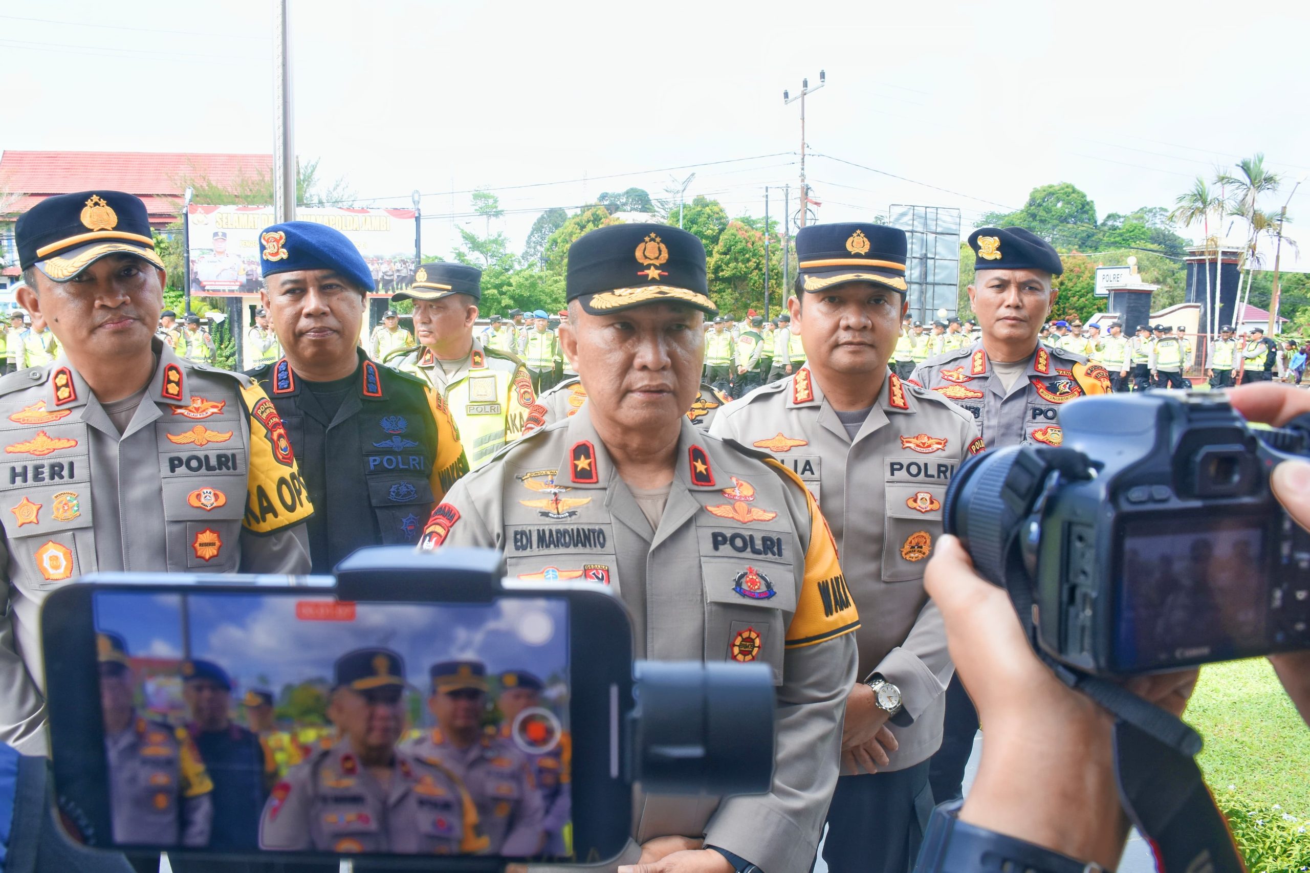 Jambi, Setelah memberikan arahan, Wakapolda Jambi, Brigjen Pol. Edi Mardianto melakukan pengecekan personel yang akan melaksanakan Pengamanan Tempat Pemungutan Suara (TPS) dan Kompi Kerangka dalam rangka operasi Mantap Brata 2024.