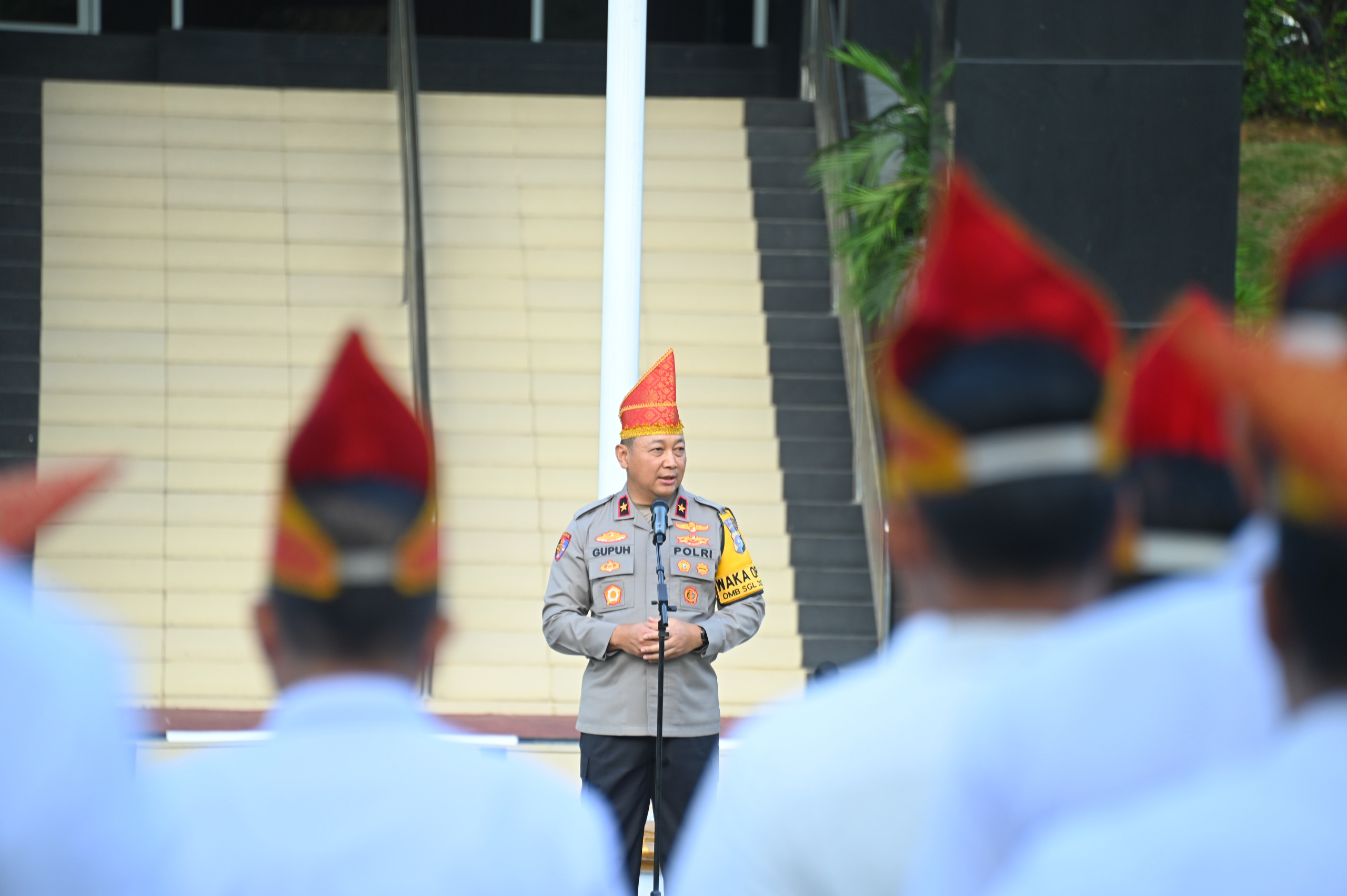 Sumbar, Wakil Kepala Kepolisian Daerah (Wakapolda) Sumatera Barat Brigjen Pol Gupuh Setiyono pimpin apel pagi di lapangan depan Mapolda Sumbar, Rabu (28/2/24).