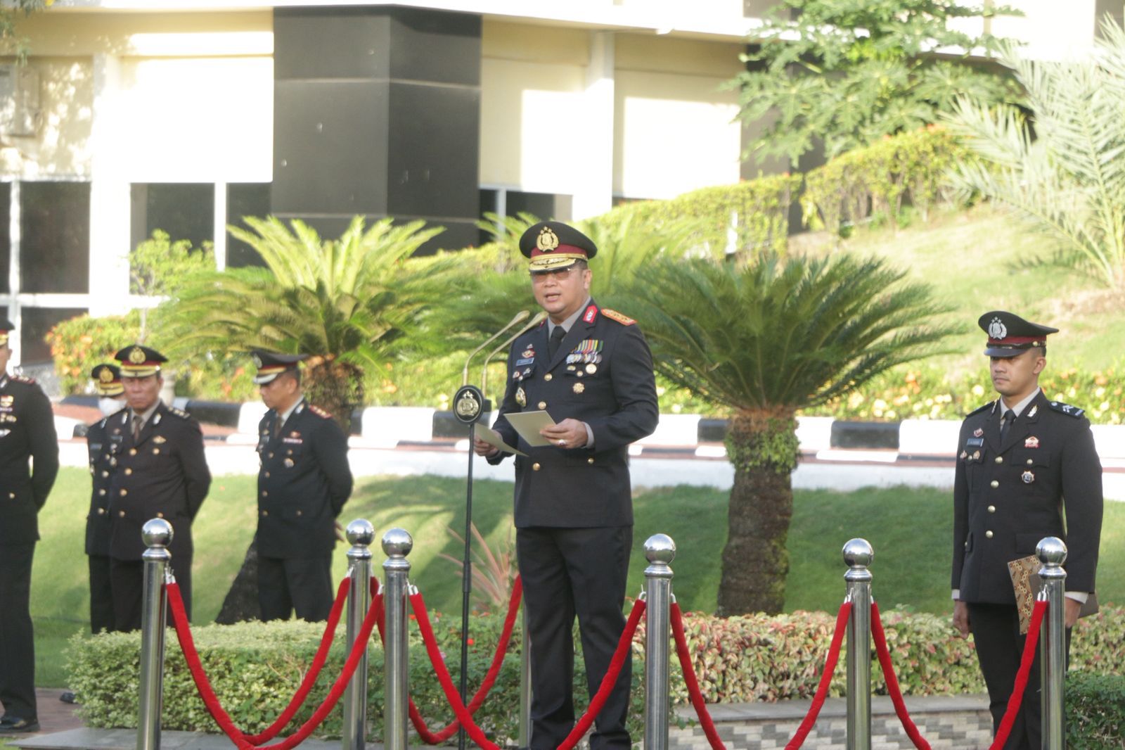 Sumbar — Wakil Kepala Kepolisian Daerah Sumatera Barat, Irjen. Pol. Gupuh Setyono, S.I.K., M.Si., memimpin langsung upacara peringatan Hari Lahir Pancasila yang dilaksanakan di Lapangan Apel Mapolda Sumbar pada Senin pagi (2/6).